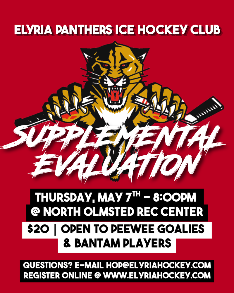 The Elyria Panthers are looking for a few additional players to complete our 2026-27 rosters. If you're still looking for a home for the upcoming season, join us for a supplemental skate.